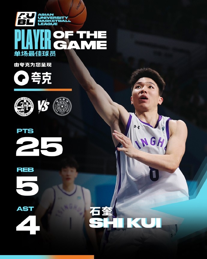 25分5板4助!清華大學(xué)后衛(wèi)石奎連續(xù)兩場(chǎng)當(dāng)選全場(chǎng)最佳球員