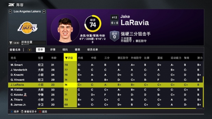 08月30日訊 NBA2K26各隊球員能力值出爐,其中湖人詳情如下: