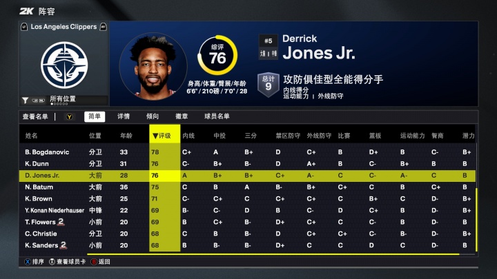 2K26快船能力值:小卡唯一90+!哈登排第二 祖巴茨87
