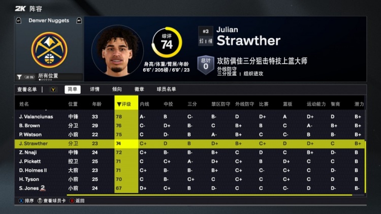 8月30日訊 今日NBA 2K26正式發(fā)布,掘金隊(duì)球員能力值如下: