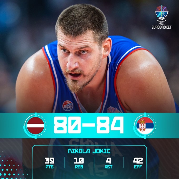 打破魔咒!約基奇39分創(chuàng)國家隊生涯單場得分紀錄 率隊贏拉脫維亞