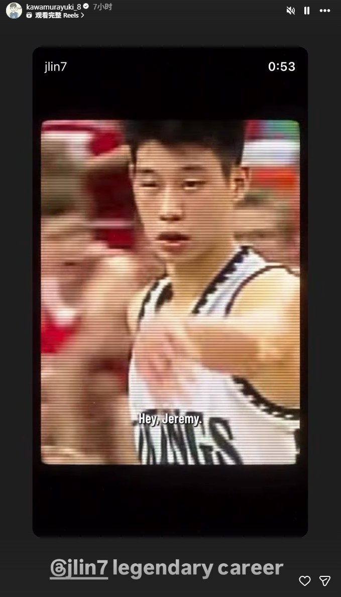 今天,日本后衛(wèi)河村勇輝更新社媒,向林書豪致敬,他寫道:“傳奇的職業(yè)生涯!”