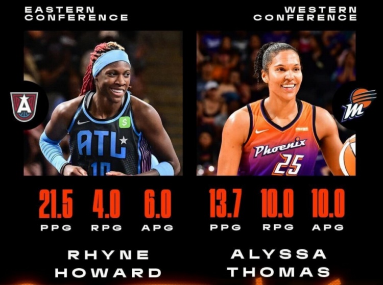 9月3日訊 今日WNBA官方宣布,亞特蘭大夢想球員萊恩-霍華德、鳳凰城水星球員艾莉莎-托馬斯分別當(dāng)選第13周東西部周最佳球員。