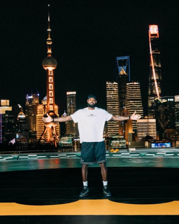 詹姆斯今日更新Instagram,曬出他昨晚在下榻酒店頂樓所拍攝的一組中國行宣傳照,以及從頂樓拍攝到的外灘絕美夜景。