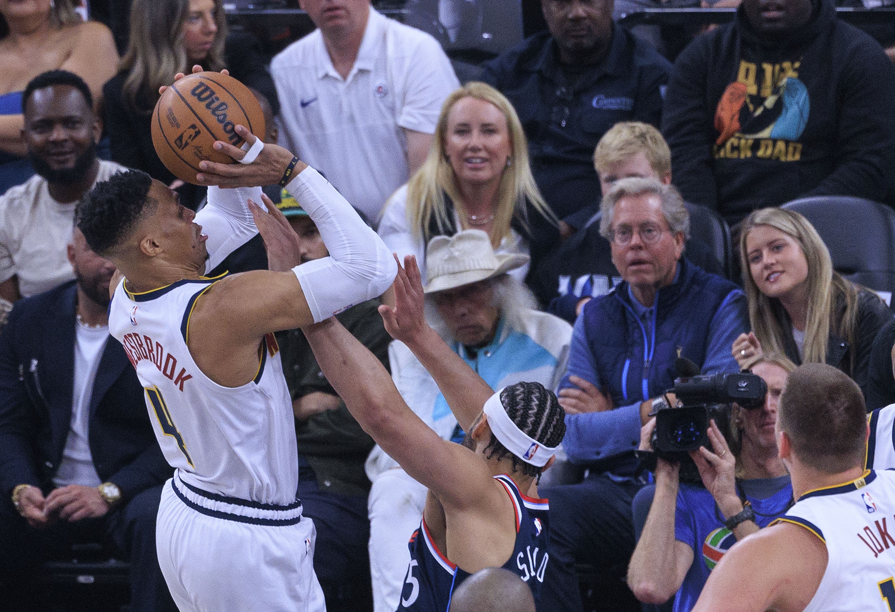 上賽季西蒙斯在快船場(chǎng)均2.9分3.8籃板3.1助攻,威少在掘金場(chǎng)均13.3分4.9籃板6.1助攻1.4搶斷。