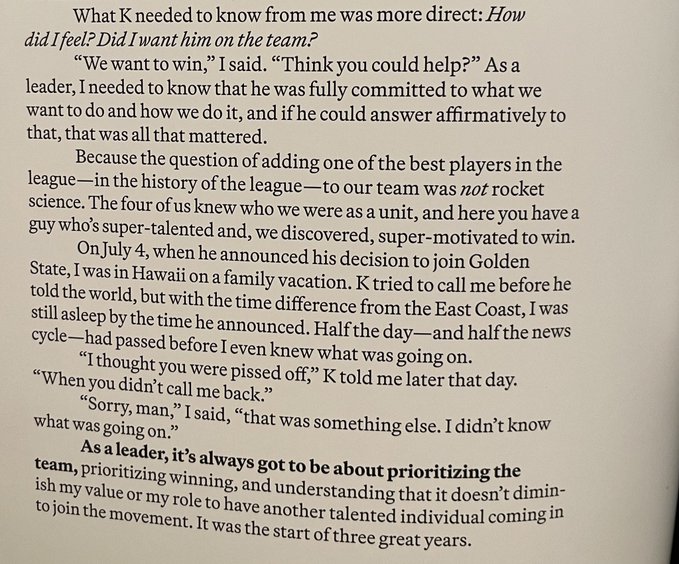 作為一名領(lǐng)導(dǎo)者,永遠(yuǎn)要把球隊(duì)、把贏球放在首位,并且要明白,另一位有天賦的球員加入進(jìn)來(lái),并不會(huì)削弱我的價(jià)值或我的角色。這是美好三年的開(kāi)端。