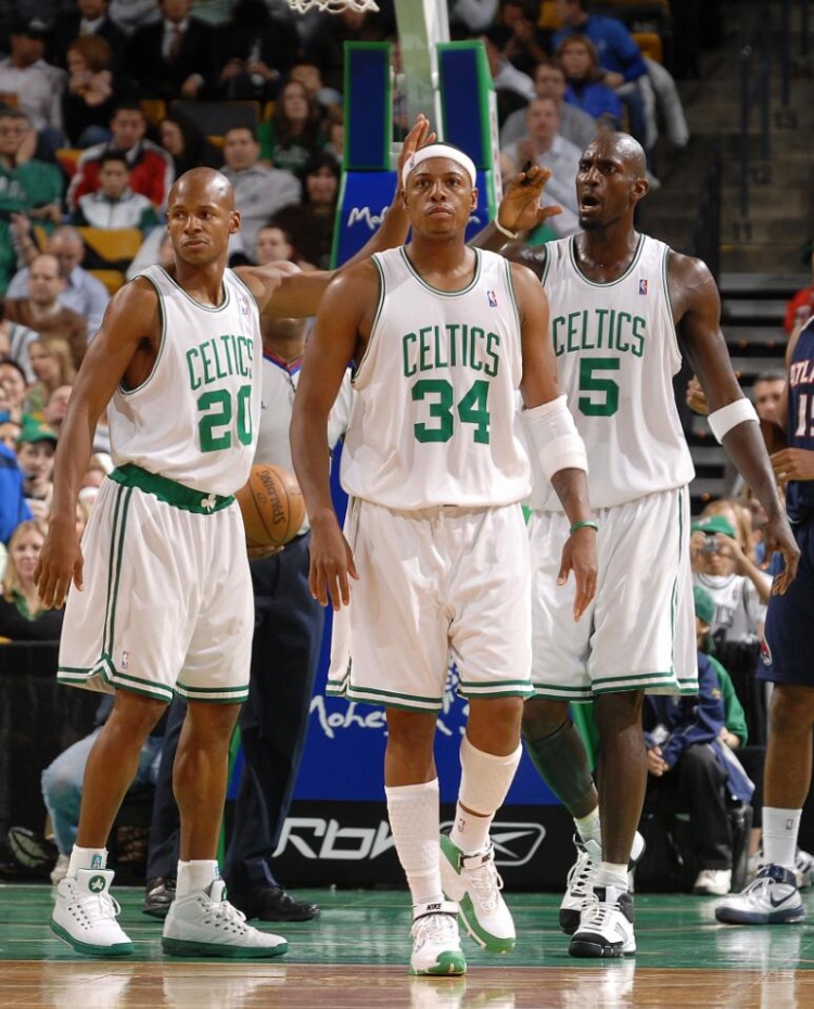 “在詹姆斯組三巨頭(2010年夏)之前,綠軍已經(jīng)完成了這一操作(2007年夏) ?!迸两鹚贡硎?。