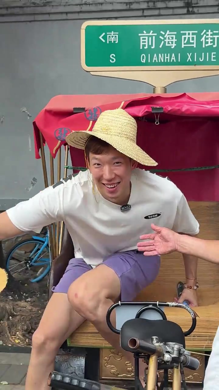 到后海游玩!周琦坐三輪車&學習歇后語:蓋了帽兒了 嘿...