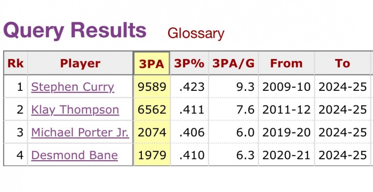 9月9日訊 據(jù)數(shù)據(jù)網(wǎng)站Basketball Reference統(tǒng)計,NBA歷史僅4人生涯場均投6+三分且命中率40%+,他們分別是:
