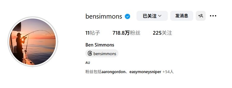 近期,西蒙斯將個(gè)人社媒頭像換成了自己釣魚的照片。