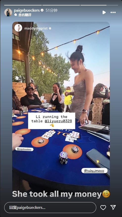 李月汝身著吊帶裙和隊(duì)友打德州撲克 佩奇:她把我錢(qián)全贏走了...