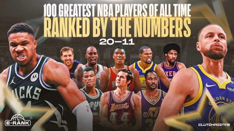 9月12日訊 著名媒體Clutch Points利用其旗下記者Josh Eberley創(chuàng)造的"E-Rank"的計(jì)算公式,評(píng)選了NBA歷史球星Top100,今天更新了第20-11位: