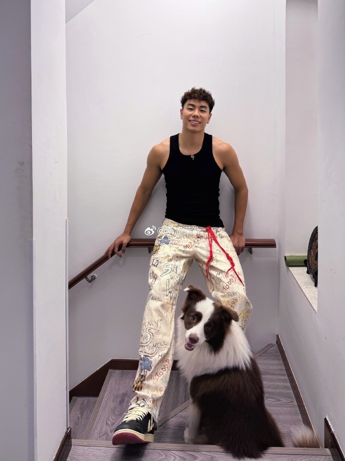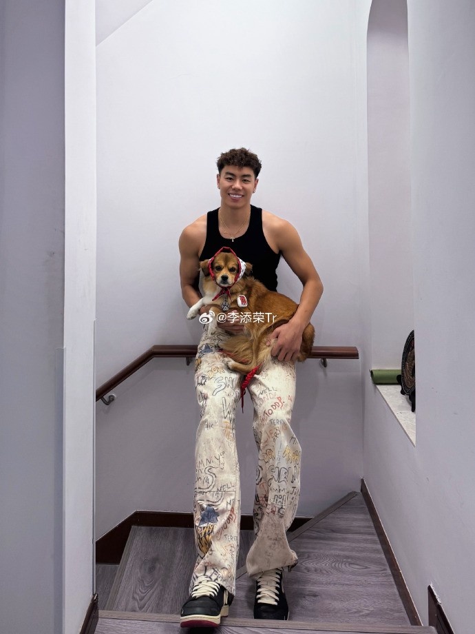 李添榮配文寫道:“帥小狗??and帥小孩??”