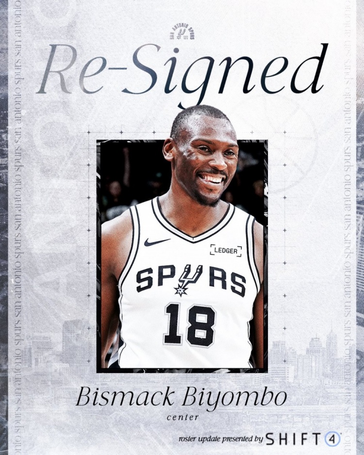 據(jù)名記Michael Scotto報道,馬刺和比永博簽下的是一份一年的無保障合同。