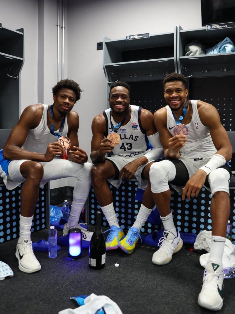 賽后,字母哥在社媒曬出了一張三兄弟(字母、字母哥哥、字母弟弟)戴著獎(jiǎng)牌的合照。保羅-加索爾評(píng)論道:“為國爭光,恭喜你的家人,兄弟!”
