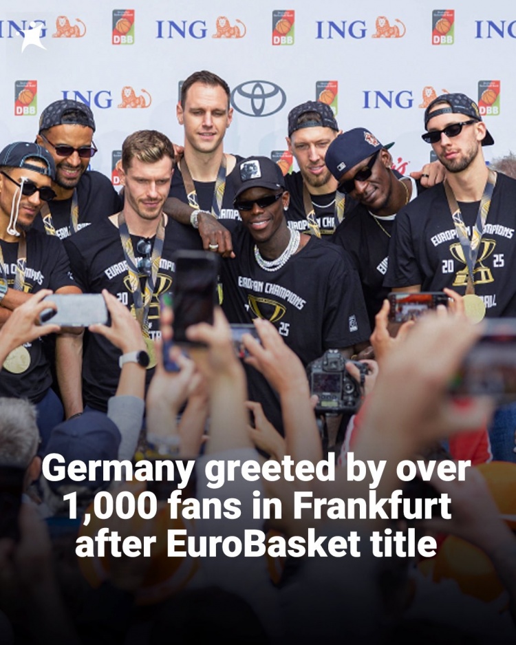 9月16日訊 2025男籃歐錦賽,德國9戰(zhàn)全勝,最終奪得冠軍。據(jù)歐洲媒體Basketnews報道,德國男籃回到法蘭克福之后,受到超過1000名球迷熱烈歡迎。球迷們和球隊一起慶祝奪冠。...
