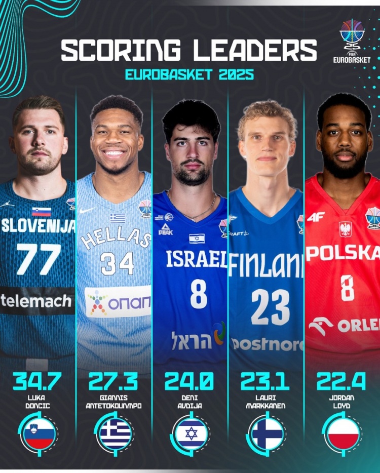 東契奇、申京、字母哥刷屏!官方發(fā)布?xì)W錦賽各項(xiàng)數(shù)據(jù)前五海報(bào)...