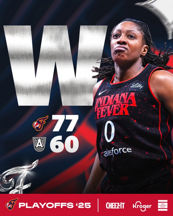 09月17日訊 WNBA季后賽首輪G2,印第安納狂熱77-60擊敗亞特蘭大夢想,1-1扳平大比分,將迎來決勝局。(WNBA首輪為3場2勝制)