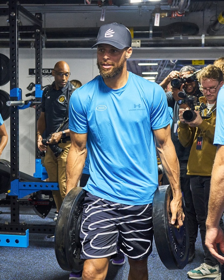 ??17季要來了!庫里手持杠鈴片參加活動(dòng) 小臂麒麟臂青筋暴起!...