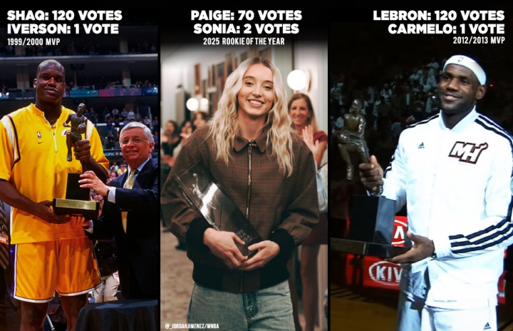 2025年WNBA最佳新秀,佩奇拿到72張選票中的70張選票,另外2張選票由西特龍獲得