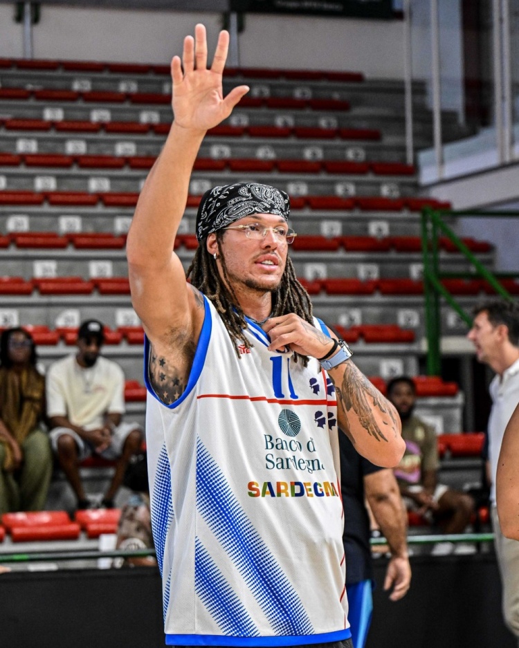 9月19日訊 掘金球員阿隆-戈登在意大利薩薩里出席活動時,穿著其已故哥哥德魯-戈登的球衣。