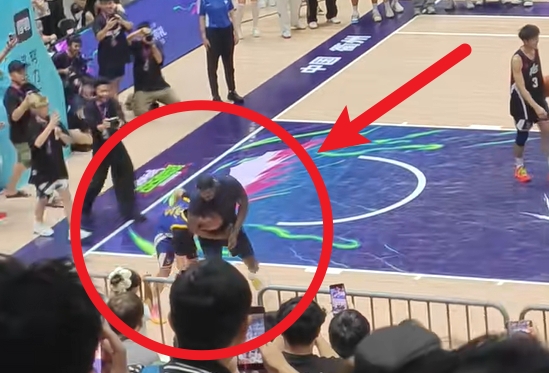 活動(dòng)現(xiàn)場(chǎng),中國(guó)街球球員程鑫凱穿著普爾的球衣防守追夢(mèng)被頂翻在地,隨后追夢(mèng)將“普爾”鎖喉并拉拽了五米之遠(yuǎn)。