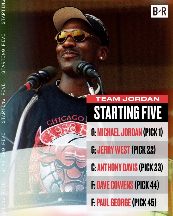 邁克爾-喬丹(1順位)、杰里-韋斯特(22順位)、安東尼-戴維斯(23順位)、達夫-考恩斯(44順位)、保羅-喬治(45順位)