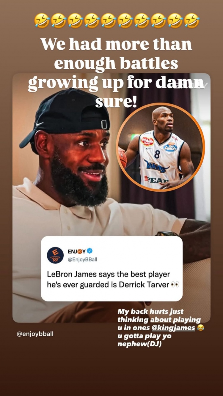 塔弗本人在Instagram上轉(zhuǎn)發(fā)了這段采訪并寫道:“光是想到和你的那些交手,我的背就會(huì)痛起來??@詹姆斯 你現(xiàn)在還是跟你侄子(DJ,即塔弗的兒子)對位吧?!?/p>