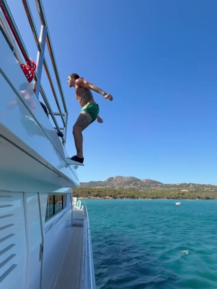 水花略大 后空翻給幾分?戈登曬出游艇上跳水片段...