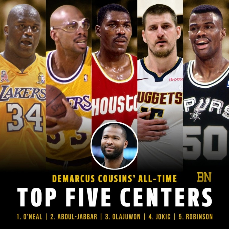 他給出了自己的排名,奧尼爾排在第一、賈巴爾第二、奧拉朱旺第三、約基奇第四、大衛(wèi)-羅賓遜第五。