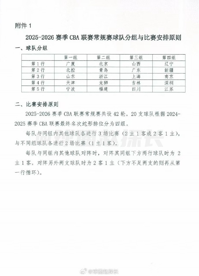 新賽季CBA各隊(duì)分4組共42輪 同組對(duì)手2客1主或1客2主&組外1客1主