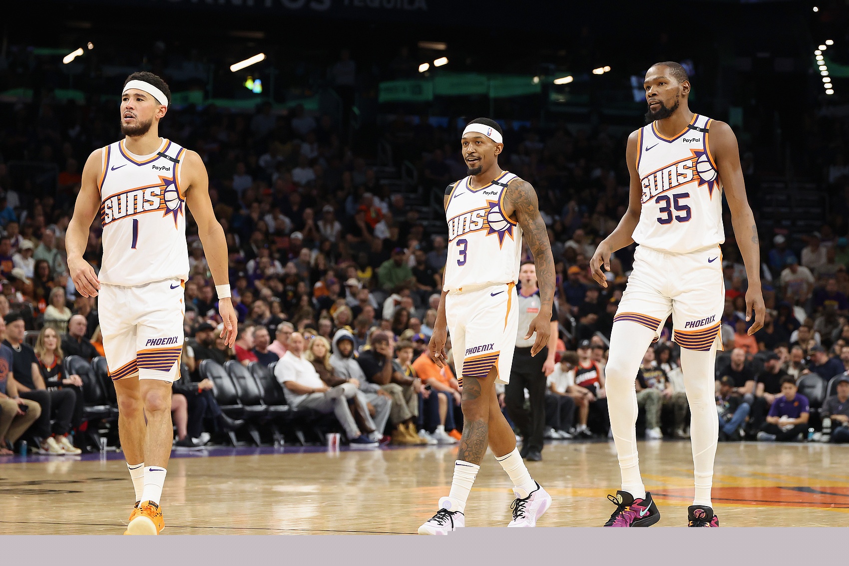 主持人:“我知道,你們仨(杜蘭特比爾布克)在場(chǎng)下關(guān)系都不錯(cuò),但是場(chǎng)上好像總是有些不對(duì)勁?!?/p>