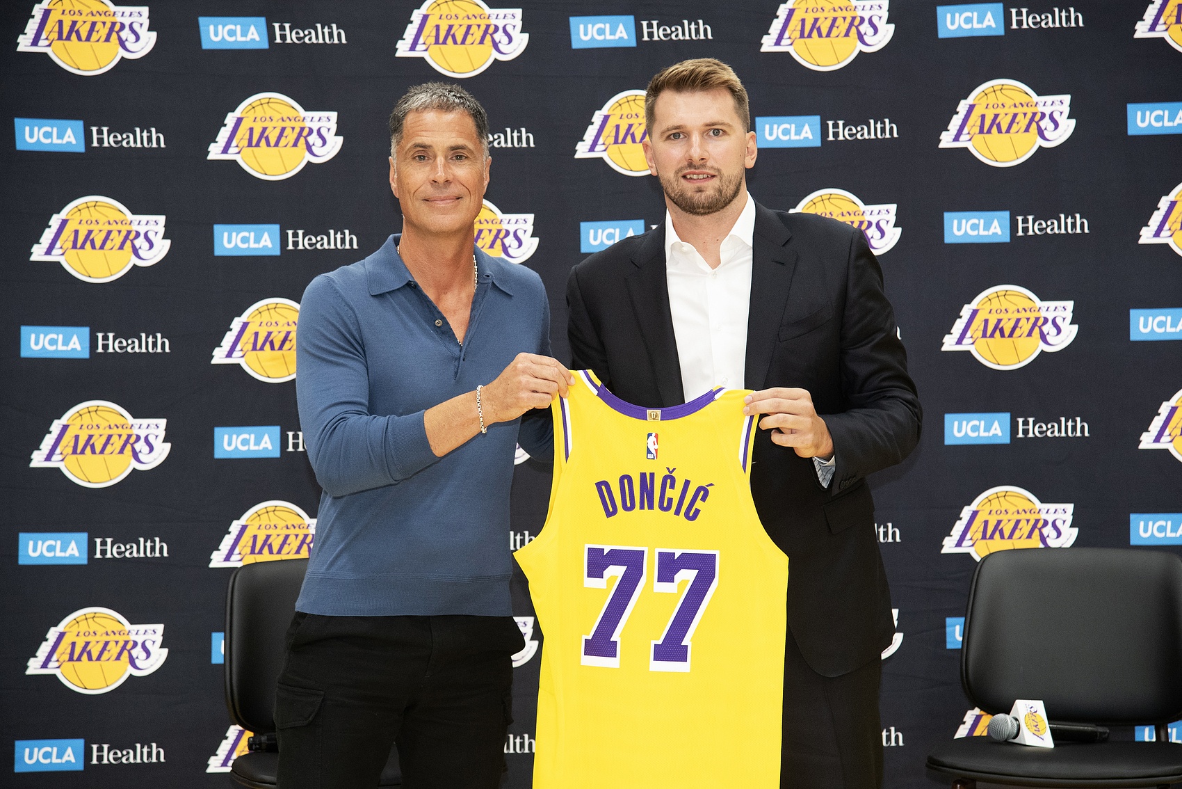 但與大多數(shù)的開(kāi)始不同,這一次算是一次預(yù)演,二月份加盟湖人讓東契奇感受到了在洛杉磯的生活會(huì)是什么樣子。在他被獨(dú)行俠交易之后、為新球隊(duì)首秀之前,湖人讓他來(lái)到中場(chǎng),像歐洲足球運(yùn)動(dòng)員與新俱樂(lè)部的支持者見(jiàn)面一樣,向球迷們介紹他。他在洛杉磯的第一場(chǎng)正式比賽是一件大事,球館里的每個(gè)座位上都放著77號(hào)的金色湖人球衣(而且詹姆斯在賽前熱身時(shí)也穿著)。