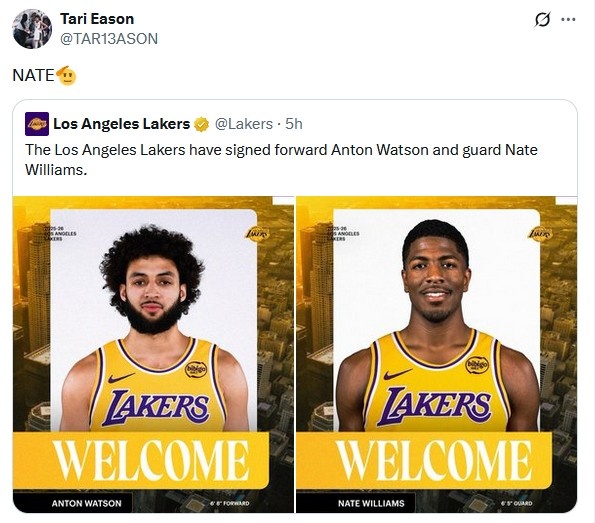 內(nèi)特-威廉姆斯加盟湖人!老隊(duì)友伊森轉(zhuǎn)發(fā)消息 并送上祝福