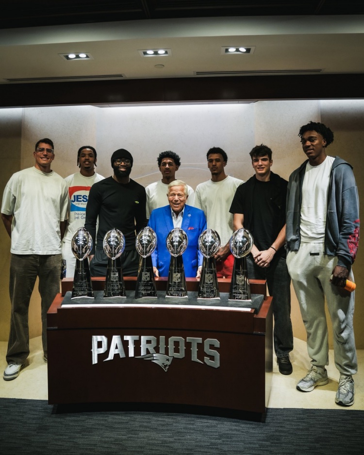 9月29日訊 杰倫-布朗帶著加爾扎、米諾特等多名隊友一起觀看了NFL同城球隊新英格蘭愛國者的比賽。