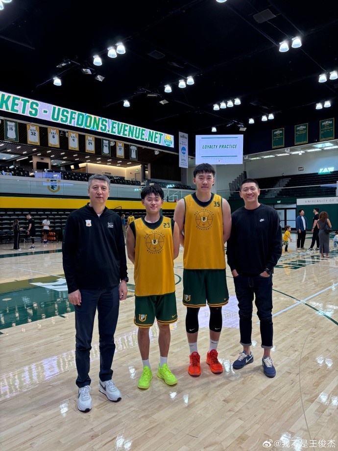 王俊杰曬出中國男籃主教練郭士強(qiáng)和助教李昂來到舊金山大學(xué)照片,兩人觀看了王俊杰和趙維倫的訓(xùn)練。