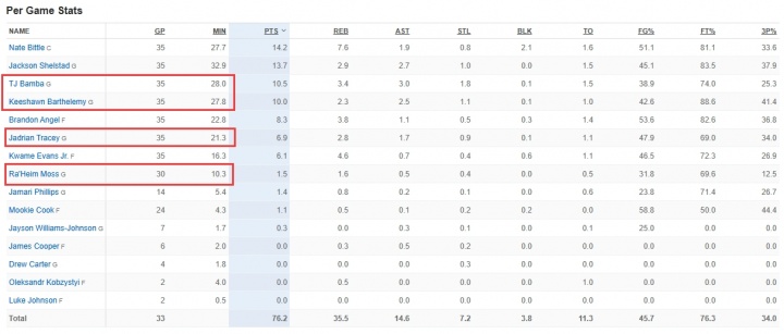 俄勒岡大學(xué)上賽季出場(chǎng)時(shí)間前5的后衛(wèi)里,有4人今夏離隊(duì)。球隊(duì)官網(wǎng)目前的名單上共有16人(不包括林葳),有5人擔(dān)任后衛(wèi),3人上賽季效力于俄勒岡。可以確定一個(gè)首發(fā)位置的是Jackson Shelstad,他大二賽季首發(fā)了全部35場(chǎng)比賽,場(chǎng)均13.7分2.9籃板2.7助攻,入選大十聯(lián)盟三陣。而Drew Carter和Jamari Phillips過去是邊緣球員,前者兩個(gè)賽季共出戰(zhàn)13場(chǎng)比賽場(chǎng)均2.2分鐘;后者大一賽季共出戰(zhàn)14場(chǎng)比賽場(chǎng)均5.4分鐘。