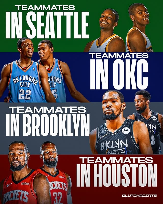 從超音速到雷霆到籃網(wǎng)再到火箭 KD和杰夫-格林再次成為隊友...