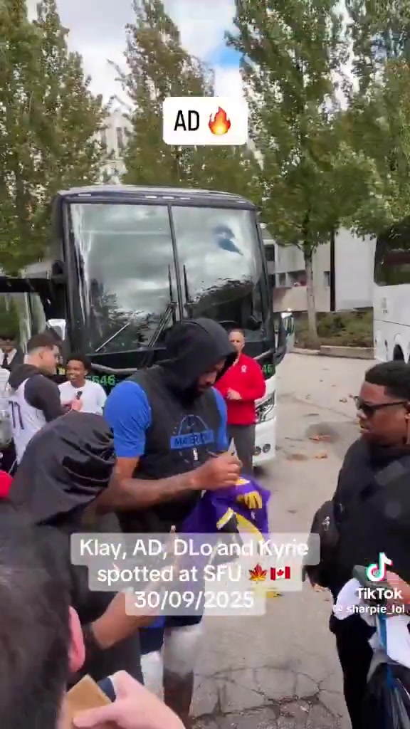 10月04日訊 今日,達(dá)拉斯獨(dú)行隊(duì)抵達(dá)了加拿大SFU大學(xué)。獨(dú)行俠前鋒安東尼-戴維斯在場館外,為手持湖人球衣的球迷簽名。...