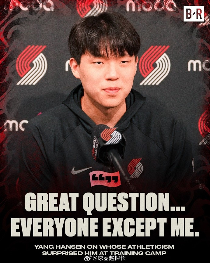10月4日訊 媒體人球權趙探長轉發(fā)了美媒制作楊瀚森言論的海報,并寫道:楊瀚森講過的話還蠻受關注,已經(jīng)不止一條被美媒做成海報了,最新的一張是BR給出的。記者問他對訓練營里哪名隊友的天賦印象深刻,小楊說“除了我,都能跑能跳”。