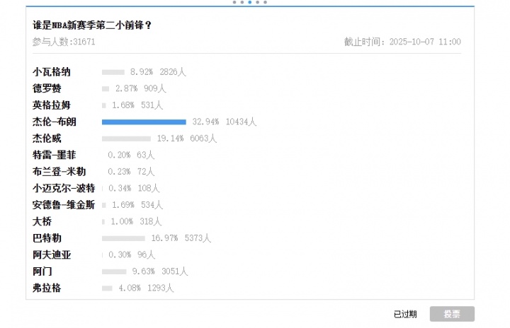 本期評選結(jié)果:小前鋒往期評選結(jié)果:『吧友評選』??NBA新賽季第一小前鋒:勒布朗-詹姆斯當(dāng)選...