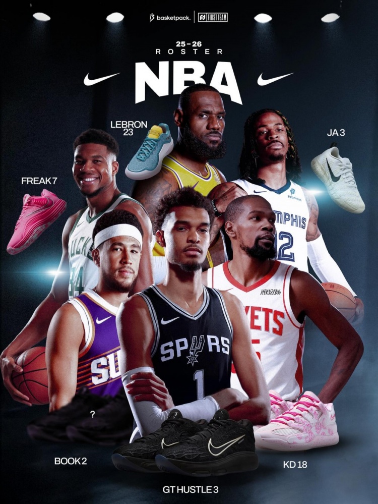 10月10日訊 法國球鞋媒體Basketpackfr曬出了三大球鞋品牌的各自6位主力代言人。