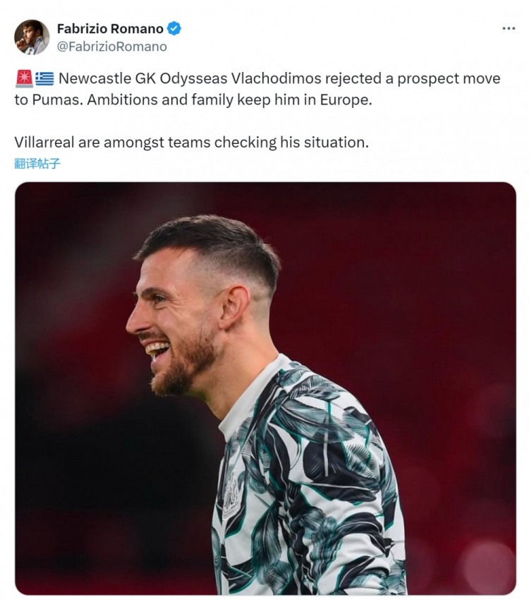 羅馬諾透露,墨西哥美洲獅有意紐卡門將弗拉喬迪莫斯,但球員拒絕了他們的邀請,個人抱負和家庭原因讓他選擇留在歐洲,比利亞雷亞爾是關(guān)注他情況的俱樂部之一。