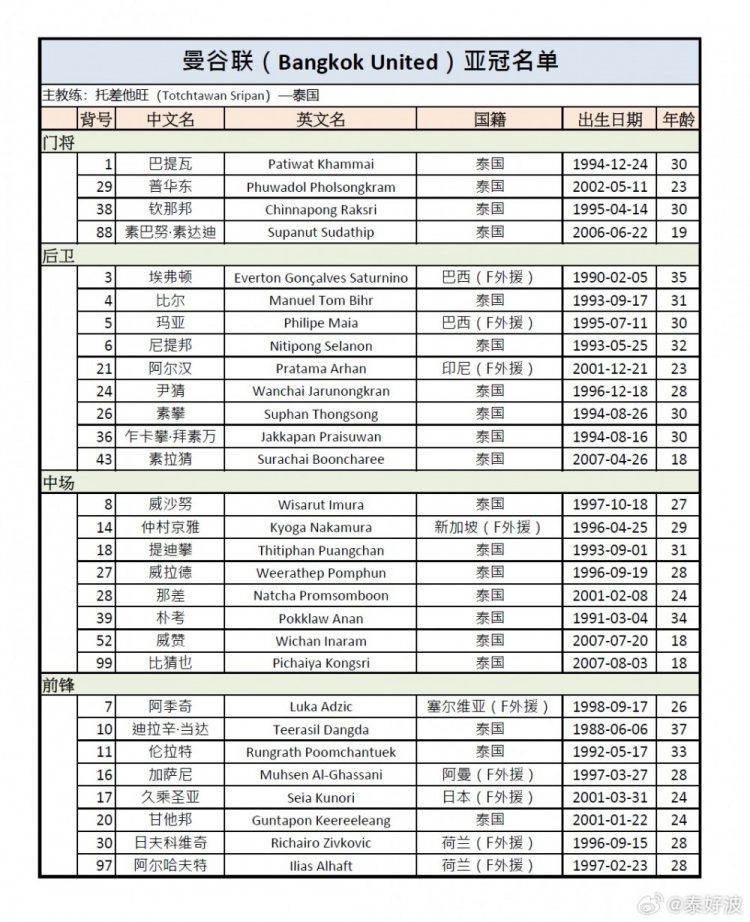 8月5日訊 據(jù)博主“泰好波”消息,曼谷聯(lián)公布做客成都蓉城的亞冠精英聯(lián)賽資格賽名單,球隊(duì)9外援出征。根據(jù)賽程,曼谷聯(lián)vs蓉城的比賽8月12日19:35進(jìn)行。