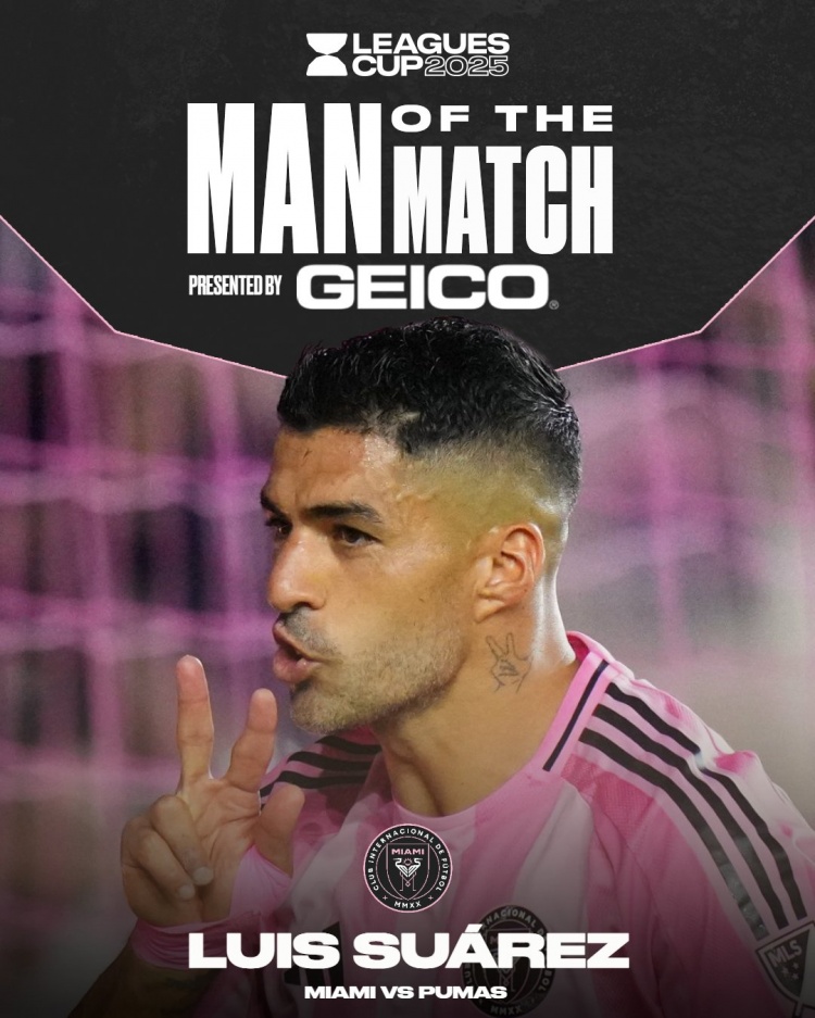 此役蘇亞雷斯勺子點射破門,并送出2記助攻,幫助邁阿密國際取勝,他當(dāng)選本場比賽最佳球員。