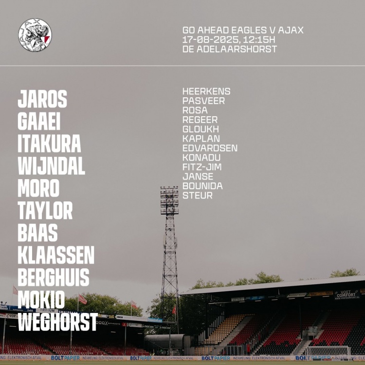 阿賈克斯公布了此役的首發(fā)名單,新援中衛(wèi)板倉滉在列,此役將是他在阿賈克斯的首秀。