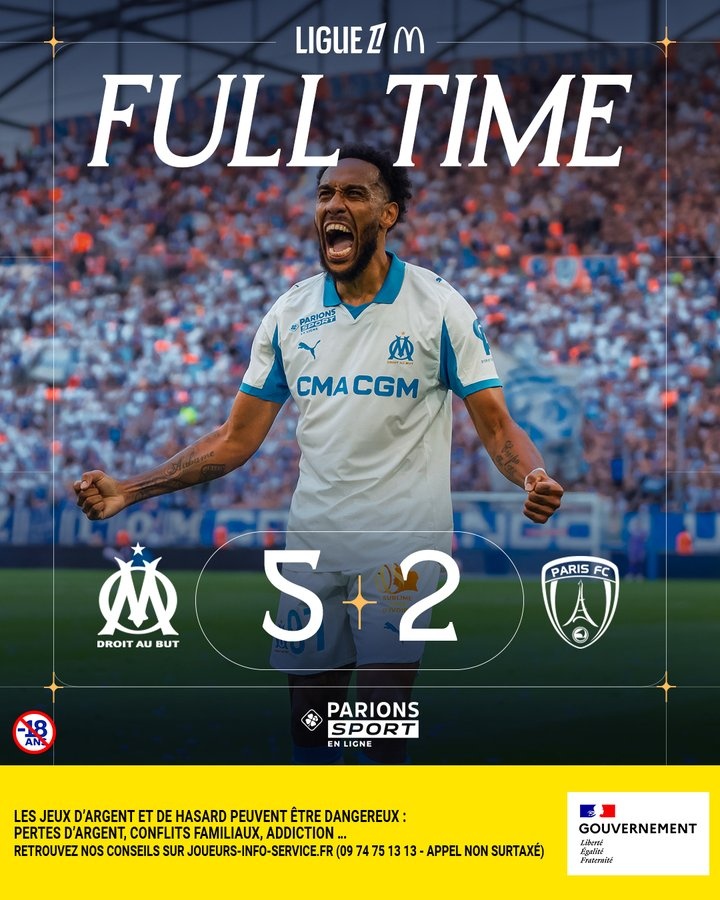 本場比賽,格林伍德點球破門幫助馬賽首開記錄,奧巴梅揚在第24分鐘破門,幫助馬賽取得2-0的領(lǐng)先。隨后,巴黎FC連入兩球?qū)⒈确职馄剑瑠W巴梅揚第73分鐘再次破門,幫助馬賽再次領(lǐng)先,他也上演梅開二度,霍伊別爾、瓦斯在第81分鐘和補時階段分別破門。馬賽最終主場5-2擊敗巴黎FC,取得聯(lián)賽首勝。
