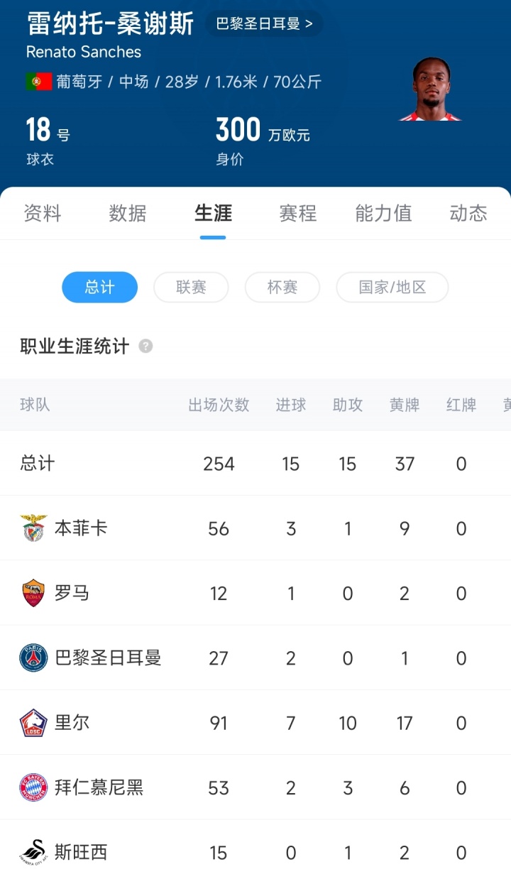 目前桑謝斯的德轉(zhuǎn)身價(jià)僅有300萬歐元,而在2016年桑謝斯隨葡萄牙歐洲杯奪冠,榮膺當(dāng)年金童獎(jiǎng)時(shí),18歲的桑謝斯的身價(jià)曾達(dá)到3000萬歐,并以3500萬歐元加盟拜仁。