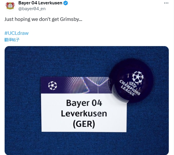 扎心了!歐冠抽簽前勒沃庫森社媒調(diào)侃曼聯(lián):希望不要抽到格林斯比