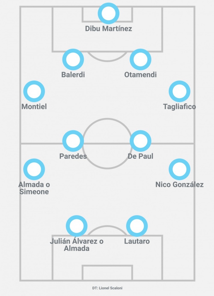 附《奧萊報》預(yù)測阿根廷隊首發(fā):大馬丁;蒙鐵爾、巴雷爾迪、奧塔門迪、塔利亞菲科;阿爾馬達/小西蒙尼、帕雷德斯、德保羅、尼科-岡薩雷斯;阿爾馬達/阿爾瓦雷斯、勞塔羅